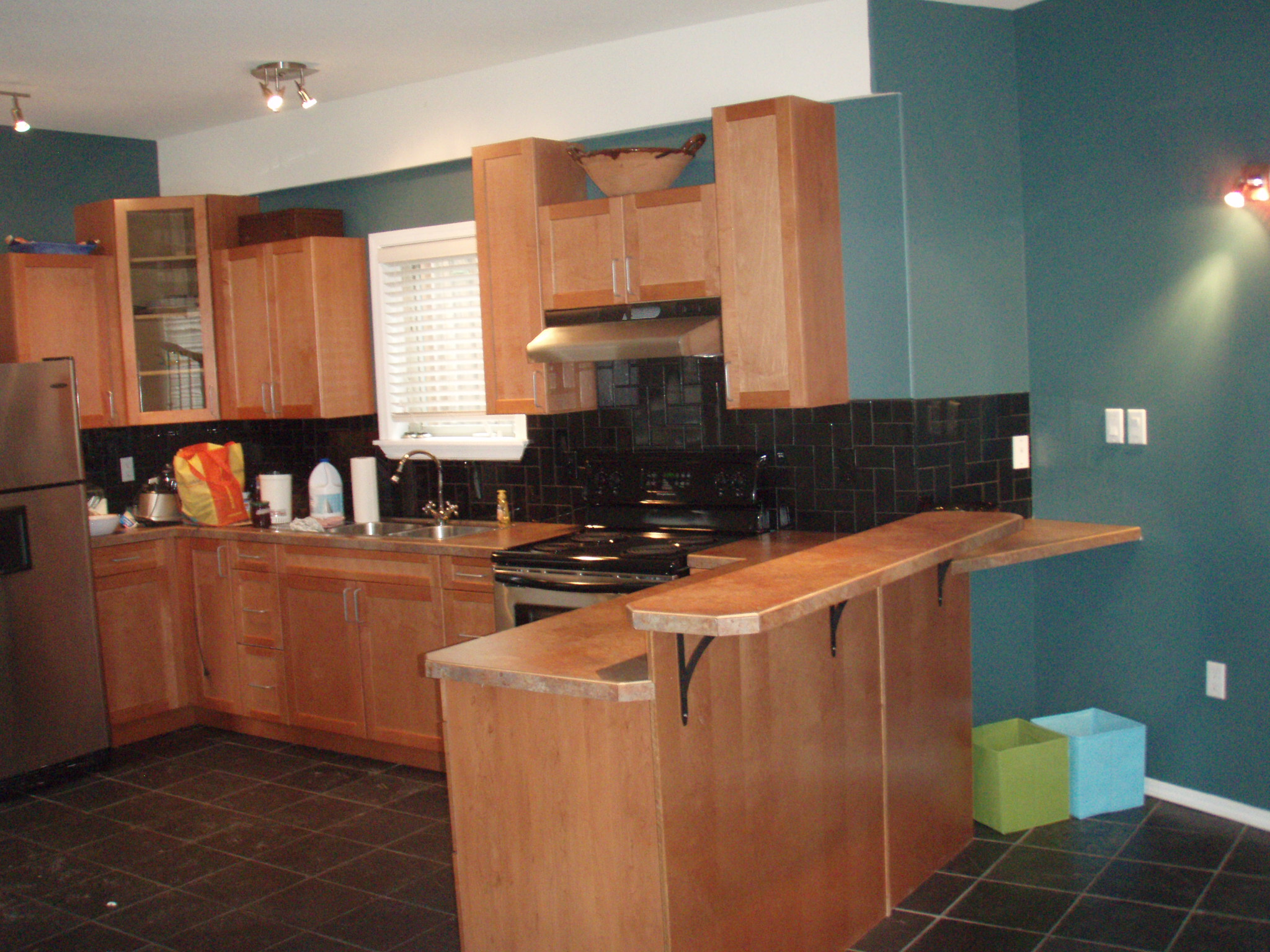 So, we are now installed in our new digs, a block away from the old digs. The new place is…weird. There is a massive spiral staircase that takes up approximately a quarter of the place, which leaves us with all kinds of nooks and crannies that are too big to leave empty but too small to put furniture in. Our living room is kind of mashed in with our bedroom but at least we have a real dining area now, one that doesn’t have to be moved around when we want to have guests over to watch a movie. And there are so many doors that lead outside I’m afraid of getting lost. But otherwise, I love it.