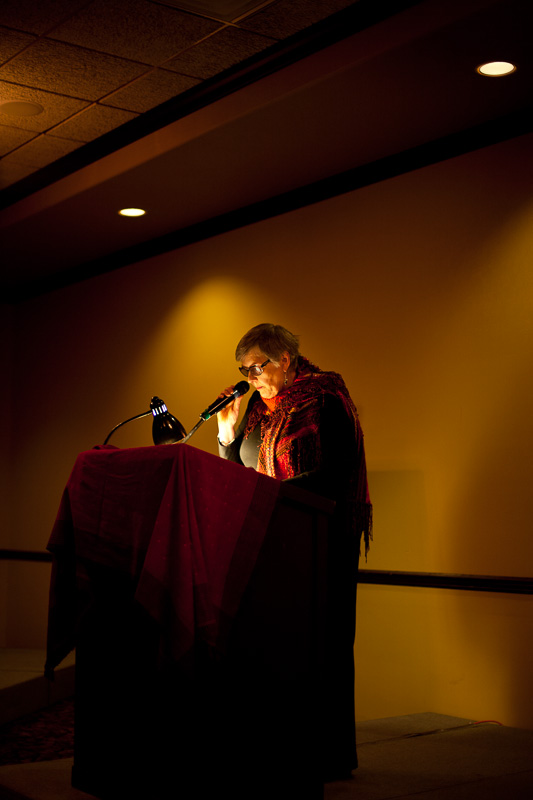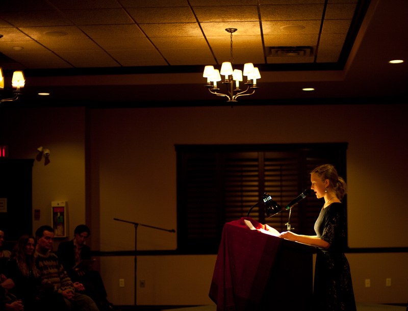One of my favourite moments of the evening was the reading by our fiction winner, Beverly Rasporich. Each year, the adult competitors are given a theme and this year’s was “revolution”. I expected a lot of subject matter to come out of that prompt but I certainly didn’t foresee this hilarious tale of red-beret’d grannies plotting escape from an old folks home. At one point, I think I saw an entire row of people doubled over laughing. Great stuff.